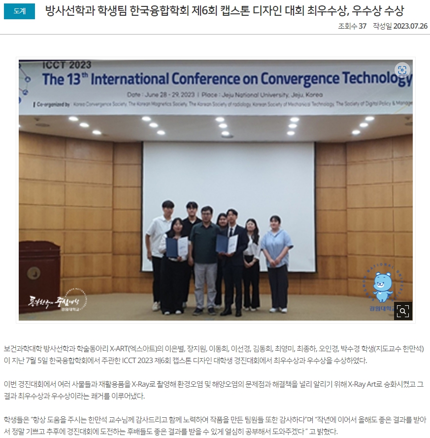 강원대학교 방사선학과 『2023년도 한국방사선학회 추계학술대회』 대거 수상