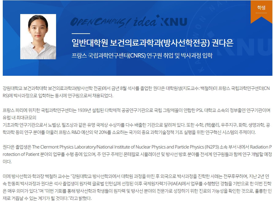 프랑스 국립과학연구센터(CNRS) 연구원 취업 및 박사과정 입학-권다은