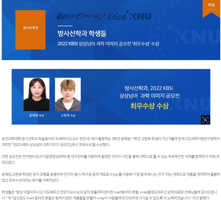 2022 KBSI 상상넘 과학 이미지 공모전 최우수상 수상