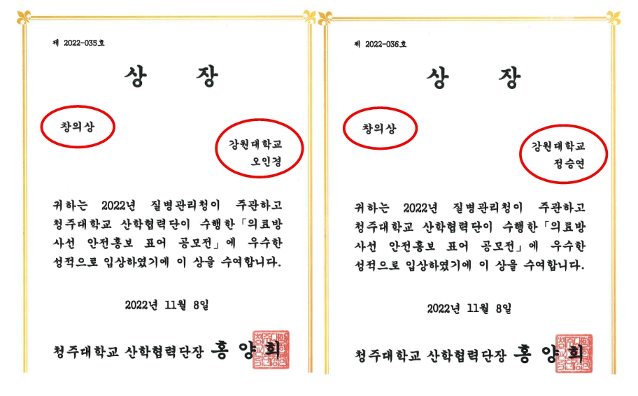 의료방사선 안전홍보 표어 공모전 창의상 수상