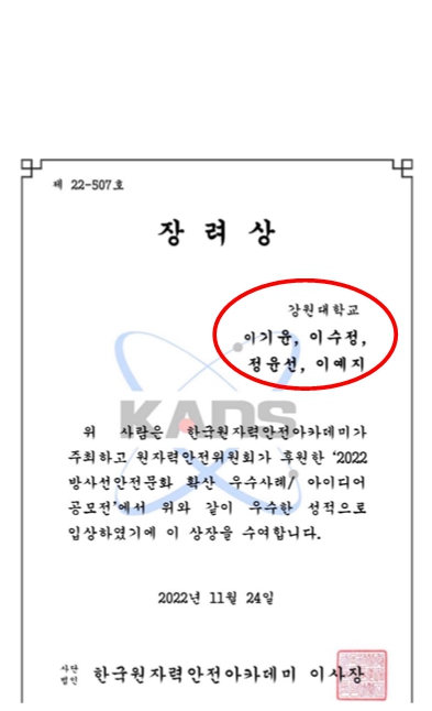 2022 방사선안전문화 확상 우수사례 아이디어 공모전 장려상 수상