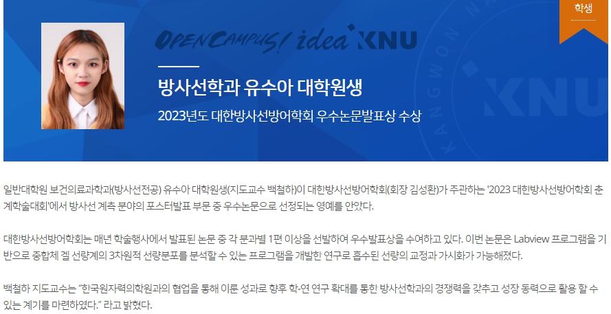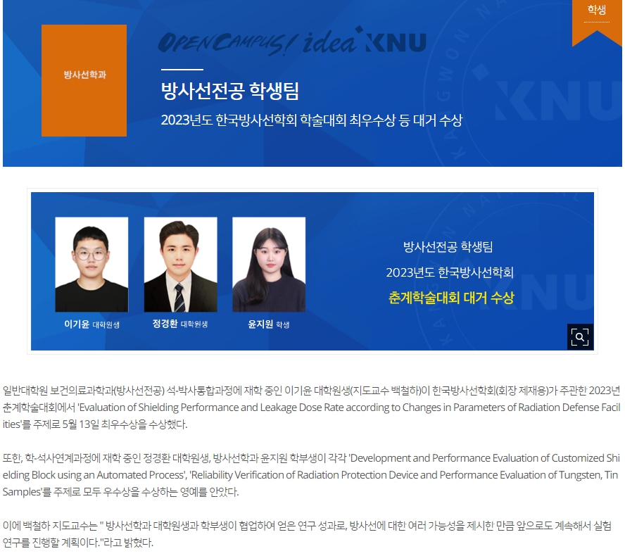2023년도 한국방사선학회 학술대회 최우수상 등 대거 수상