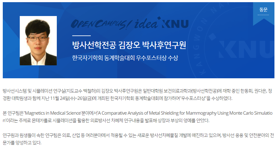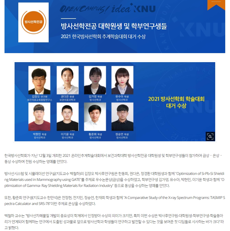 2021 한국방사선학회 추계학술대회 대거 수상(방사선학전공 대학원생 및 학부연구생)