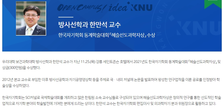[한만석교수님]한국자기학회 동계학술대회 혜슬선도과학자상 수상